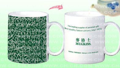 2、对于贴花丝印工艺,变色杯变色原理:是杯子外侧表面底图案上面有一层特殊的微胶囊变色材料层(冷时状态是深色,如黑色,深蓝色,咖啡色等盖住下面的图案),加热水、热咖啡后,这层微胶囊结构发生物理变化,由冷时深色状态变成透明,从而下面的底图可慢慢很神奇地显现出来。当热水变冷时,微胶囊变色又由热时透明状态恢复成冷时的深色状态。